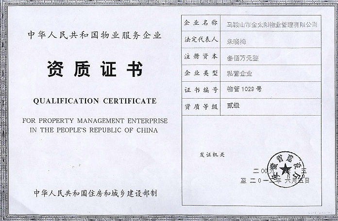 熱烈慶祝我公司順利取得物業(yè)管理二級資質(zhì)