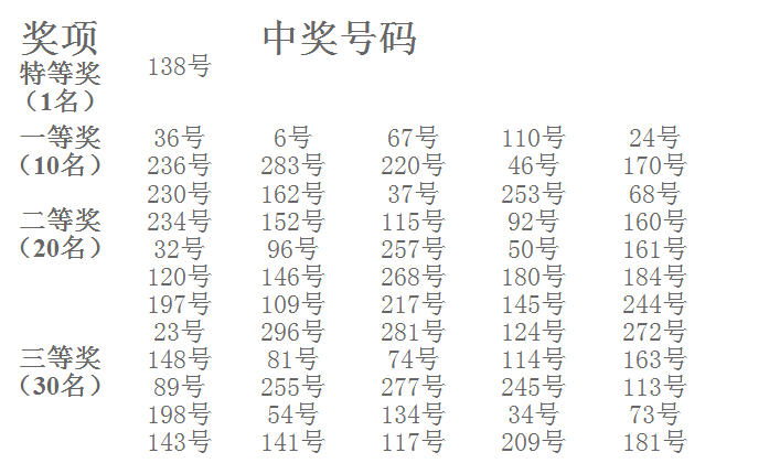 公司2010年度抽獎活動(dòng)幸運號碼公布